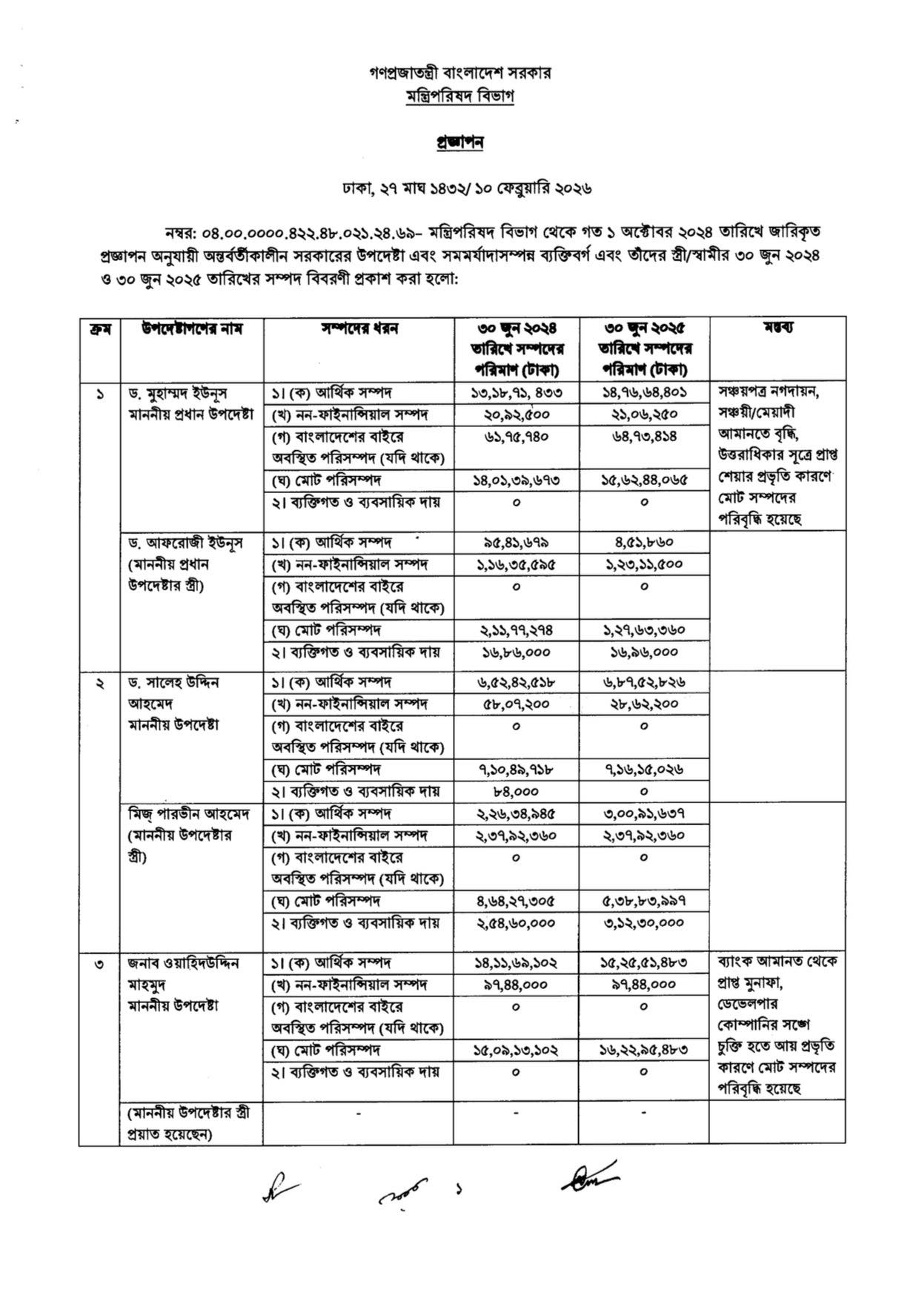 উল্লেখ্য,২০২৪ সালের আগস্টে দায়িত্ব গ্রহণের দুই সপ্তাহের মাথায় প্রধান উপদেষ্টা অধ্যাপক মুহাম্মদ ইউনূস প্রতিশ্রুতি দিয়েছিলেন,দ্রুত সময়ে সরকারের সব উপদেষ্টার সম্পদের বিবরণী প্রকাশ করা হবে।কিন্তু অন্তর্বর্তী সরকারের মেয়াদ প্রায় শেষ হতে চললেও তা এখনও প্রকাশিত হয়নি।