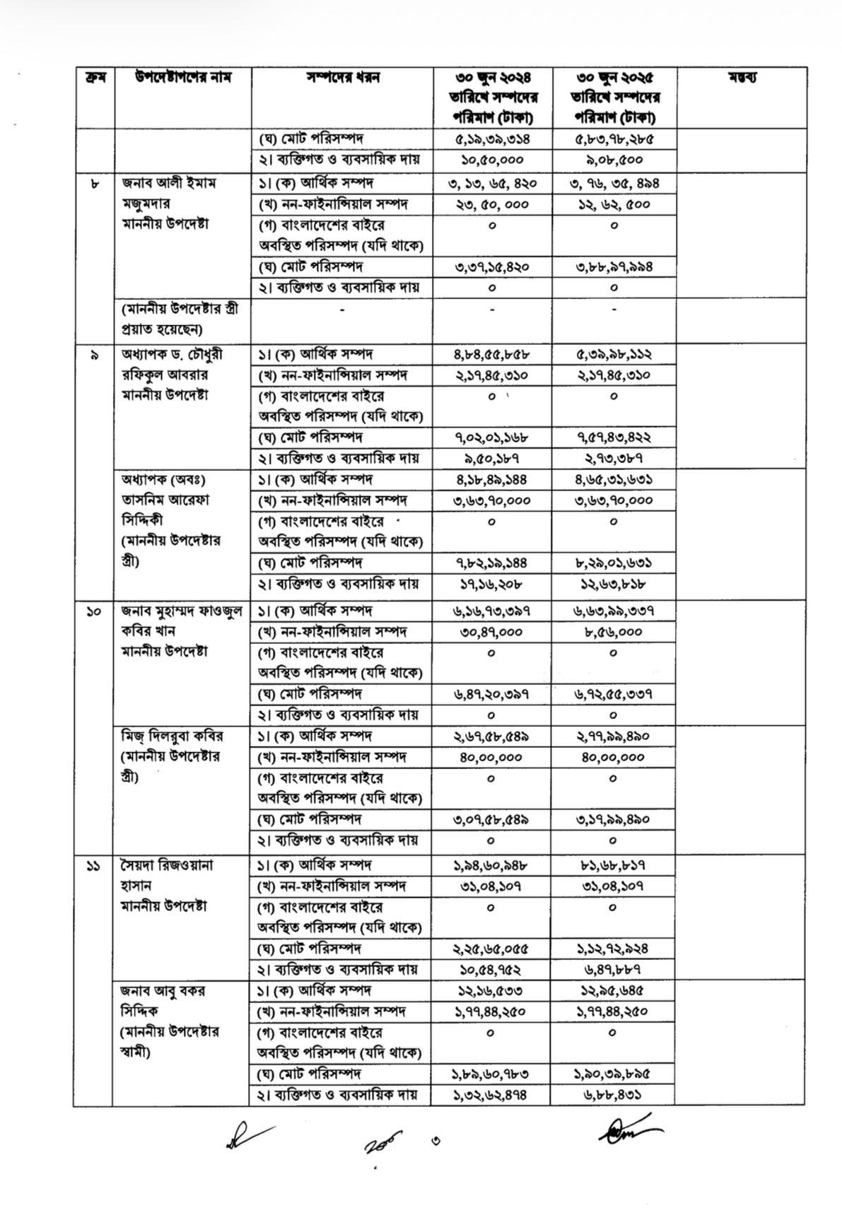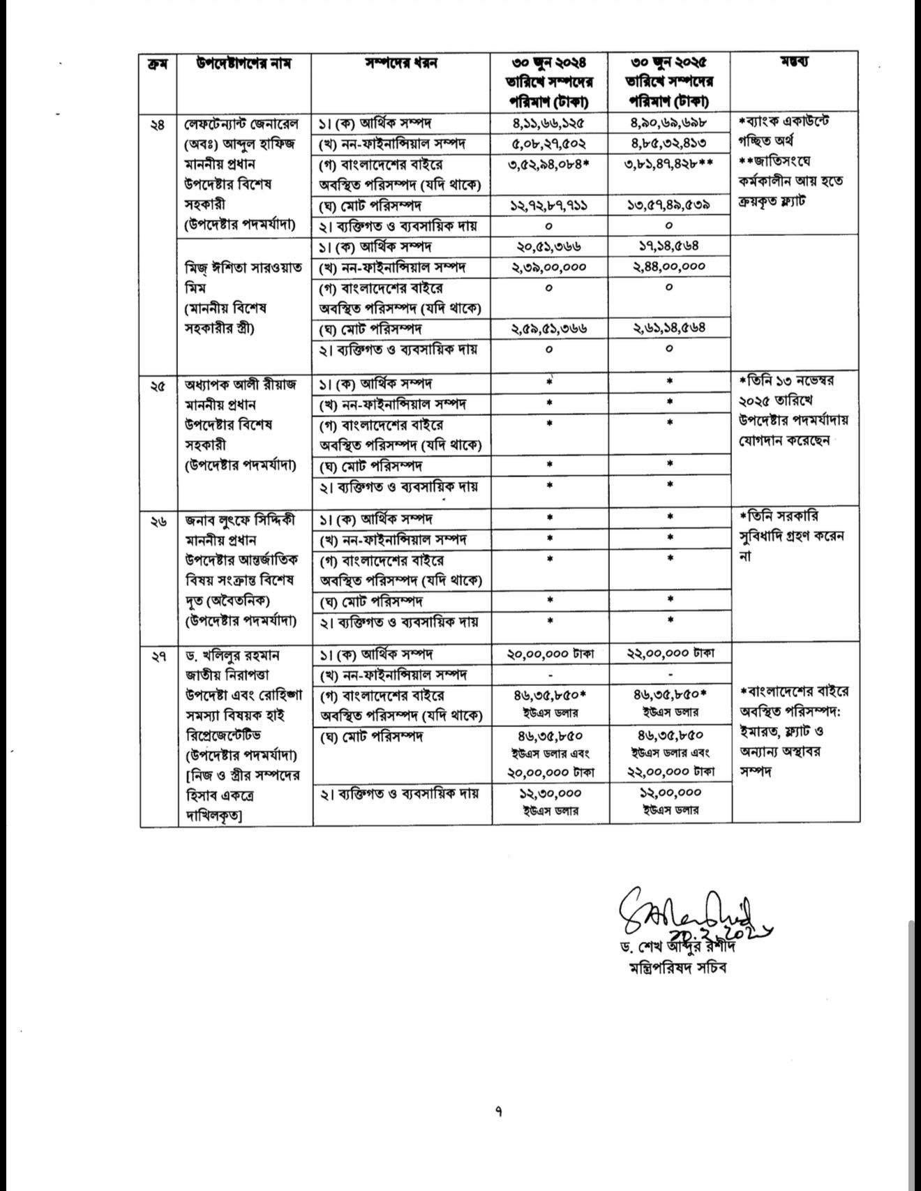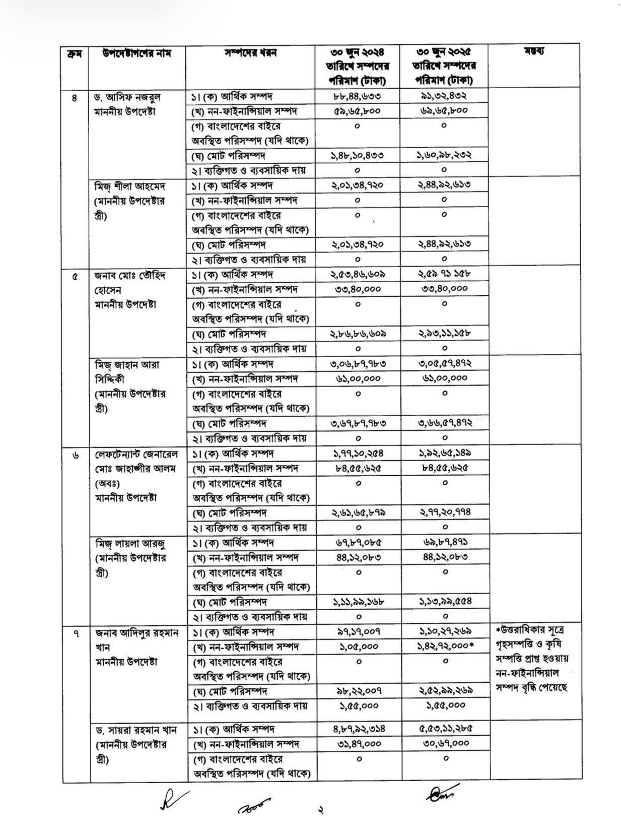 ২০২৪ সালের ১ অক্টোবর ‘অন্তর্বর্তী সরকারের উপদেষ্টা এবং সমমর্যাদাসম্পন্ন ব্যক্তিদের আয় ও সম্পদবিবরণী প্রকাশের নীতিমালা’ জারি করা হয়।নীতিমালায় বলা হয়েছে,উপদেষ্টারা প্রতিবছর আয়কর রিটার্ন জমা দেওয়ার ১৫ কর্মদিবসের মধ্যে তাঁদের সম্পদের বিবরণী প্রধান উপদেষ্টার কাছে জমা দেবেন। স্ত্রী বা স্বামীর পৃথক আয় থাকলে সেটিও জমা দিতে হবে।