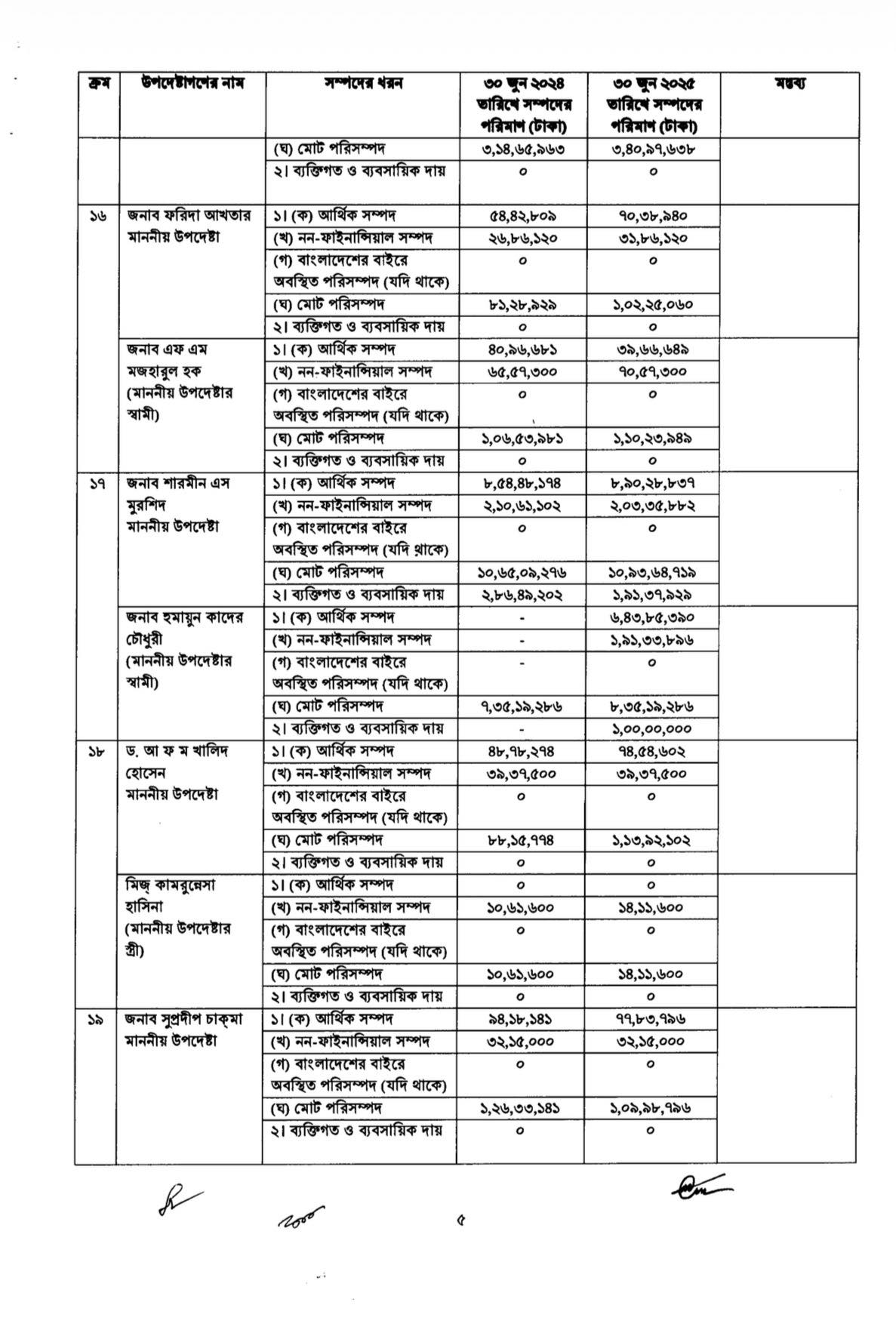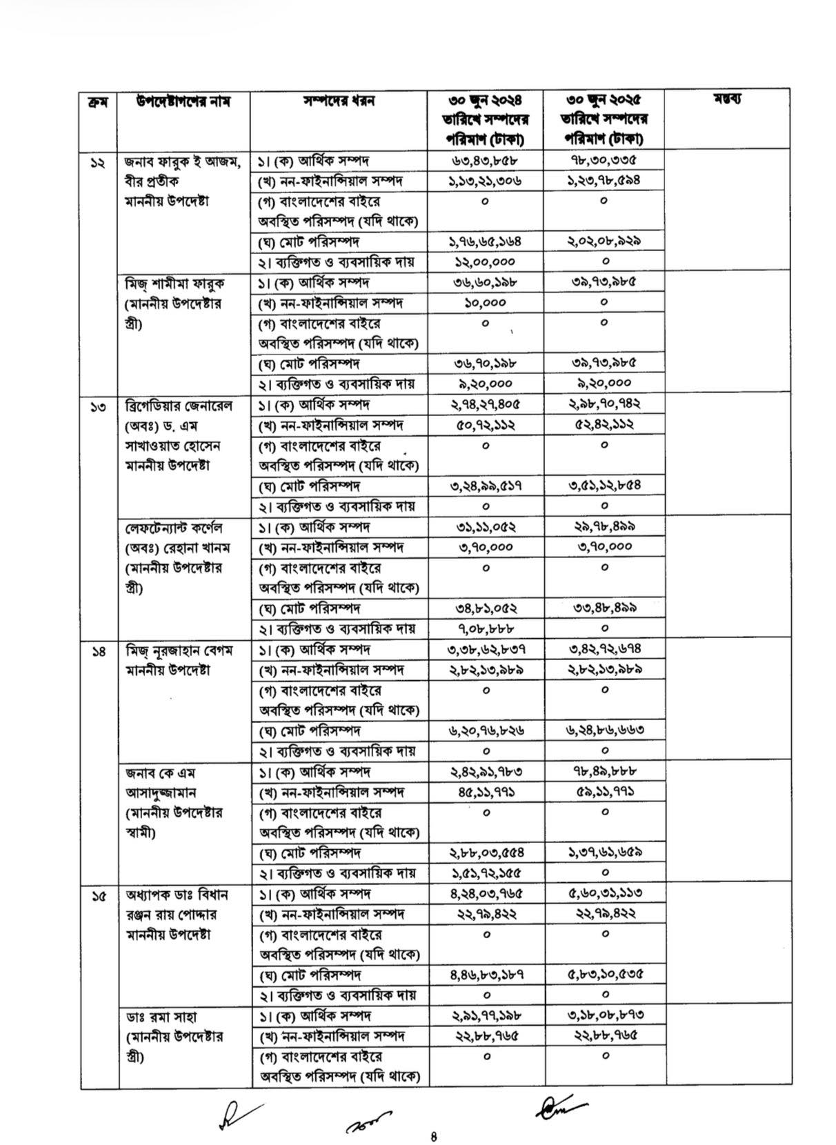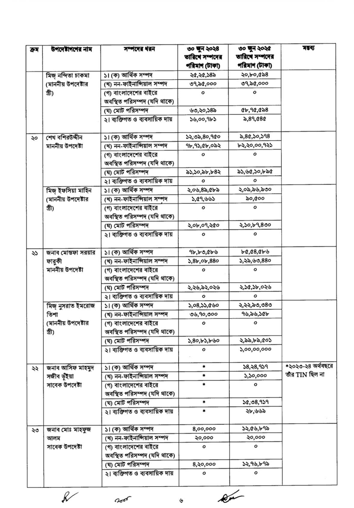 ২০২৪ সালের ১ অক্টোবর ‘অন্তর্বর্তী সরকারের উপদেষ্টা এবং সমমর্যাদাসম্পন্ন ব্যক্তিদের আয় ও সম্পদবিবরণী প্রকাশের নীতিমালা’ জারি করা হয়।নীতিমালায় বলা হয়েছে,উপদেষ্টারা প্রতিবছর আয়কর রিটার্ন জমা দেওয়ার ১৫ কর্মদিবসের মধ্যে তাঁদের সম্পদের বিবরণী প্রধান উপদেষ্টার কাছে জমা দেবেন। স্ত্রী বা স্বামীর পৃথক আয় থাকলে সেটিও জমা দিতে হবে।