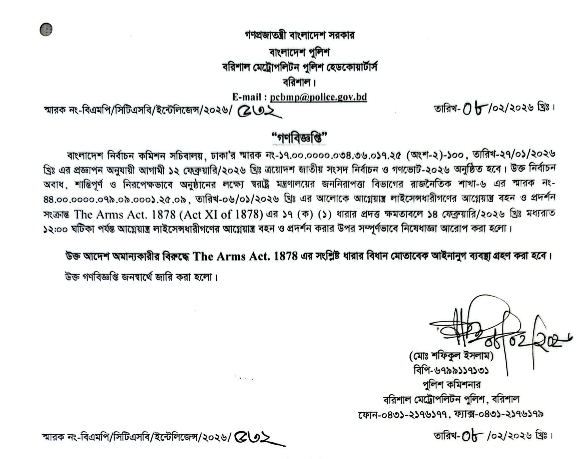 ভোটের দিন কোনো নেতার কথায় কাজ করলে চাকরি থাকবে না: বিএমপি কমিশনার