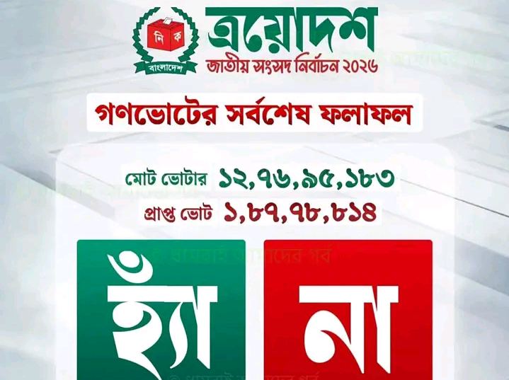 মাজহারুল ইসলাম।।১৩ ফেব্রুয়ারি ২০২৬ তারিখে নির্বাচন কমিশন ঘোষিত গণভোটের ফলাফল প্রথম দৃষ্টিতে একটি স্পষ্ট বিজয়ের ছবি তুলে ধরলেও সংখ্যাগুলো গভীরভাবে বিশ্লেষণ করলে ভিন্ন বাস্তবতা সামনে আসে।কাগজে-কলমে “হ্যাঁ” জয়ী হলেও গণতান্ত্রিক বৈধতার প্রশ্নে এই ফলাফল গুরুতর বিতর্কের জন্ম দিয়েছে।