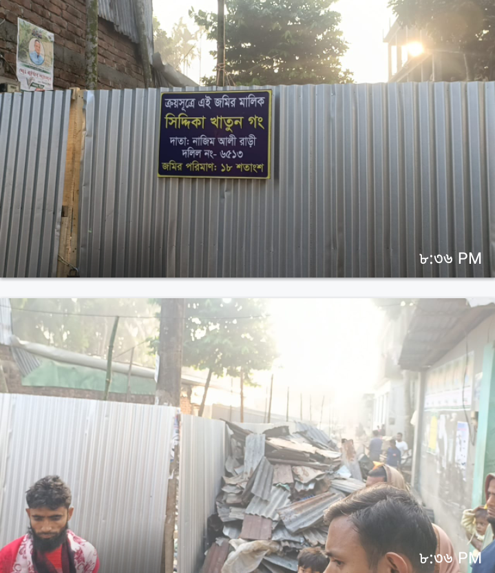 শুক্রবার (৫ডিসেম্বর ) ২০২৫ তারিখ ভোরে সরেজমিনে গিয়ে জানা যায়,পৌরসভার কালিকাপুর ওয়ার্ডে হানিফ রাঢ়ীর বায়না সুত্রে মালিকানা জমিতে টিনের ঘর তুলে সাইনবোর্ড টাঙ্গিয়ে দেয় প্রতিপক্ষ ইয়াসিন বেপারী গংদ্বয়।