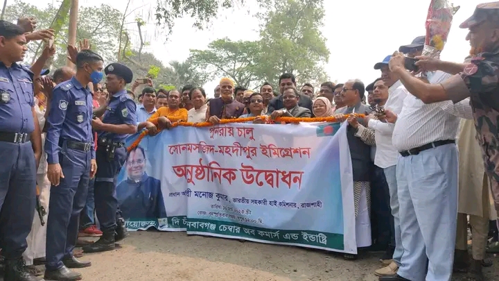 চাঁপাইনবাবগঞ্জ প্রতিনিধি।।চাঁপাইনবাবগঞ্জের সোনামসজিদ স্থলবন্দর ইমিগ্রেশন চেকপোস্ট দীর্ঘটানা তিন বছর বন্ধ থাকার পর আবারও খুলে দেওয়া হয়েছে।বৃহস্পতিবার দুপুরে বাংলাদেশ ও ভারতের মধ্যেকার গুরুত্বপূর্ণ সোনামসজিদ ইমিগ্রেশন চেকপোস্ট খুলে দেওয়া হয়।