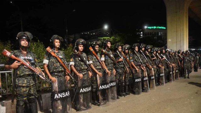 বিজ্ঞপ্তিতে জানানো হয়,চলমান পরিস্থিতি নিয়ন্ত্রণে আইনশৃঙ্খলা রক্ষার্থে ঢাকা মহানগরীতে ৪০ জন মহিলা আনসার ব্যাটালিয়ন সদস্যসহ প্রায় ১৪ প্লাটুন আনসার ব্যাটালিয়ন সদস্য মোতায়েন করেছে বাংলাদেশ আনসার ও গ্রাম প্রতিরক্ষা বাহিনী।