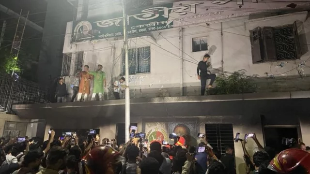 বৃহস্পতিবার সন্ধ্যা ৭টার দিকে রাজধানীর কাকরাইলে জাতীয় পার্টির কেন্দ্রীয় কার্যালয়ে আগুন ও ভাঙচুরের ঘটনা ঘটেছে।