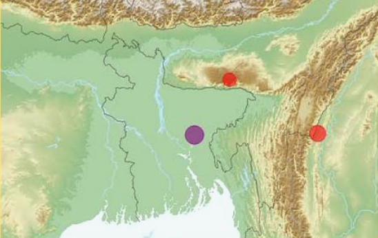 রাজধানী ঢাকার আগারগাঁওয়ে বাংলাদেশ আবহাওয়া অধিদপ্তরের ভূমিকম্প পর্যবেক্ষণ ও গবেষণাকেন্দ্র থেকে ভূমিকম্পটির উৎপত্তিস্থলের দূরত্ব ছিল ৩৮ কিলোমিটার উত্তর-পূর্বে।