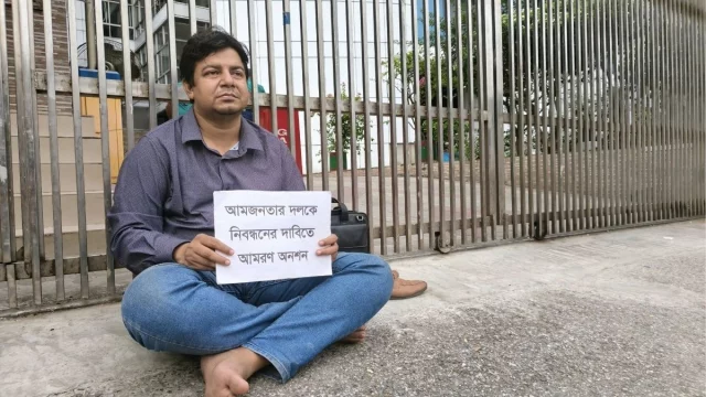 গত মঙ্গলবার (৪ নভেম্বর) নির্বাচন কমিশনের দল নিবন্ধনের তালিকায় ‘আম জনতার দল’ বাদ পড়ার পর থেকে তারেক রহমান ইসির প্রধান ফটকের সামনে আমরণ অনশন শুরু করেন।এর আগে অনশন সমর্থনে বিএনপি ও অঙ্গসংগঠনের বিভিন্ন নেতা তার প্রতি সংহতি জানান।