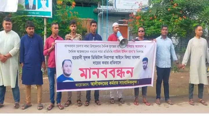 প্রসঙ্গত, গত ১৬ সেপ্টেম্বর লামা আজিজনগর ইউনিয়নে অনুষ্ঠিত একটি মানববন্ধন ও প্রতিবাদ সভার নিউজ কাভার করেন সাংবাদিকরা। এ অজুহাতে খুরশিদা নামে একজন মহিলা চট্টগ্রাম সাইবার ট্রাইব্যুনাল আদালতে ডিজিটাল নিরাপত্তা আইনে সাংবাদিক ইলিয়াছ ও নাজিমের বিরুদ্ধে মামলাটি দায়ের করেন।