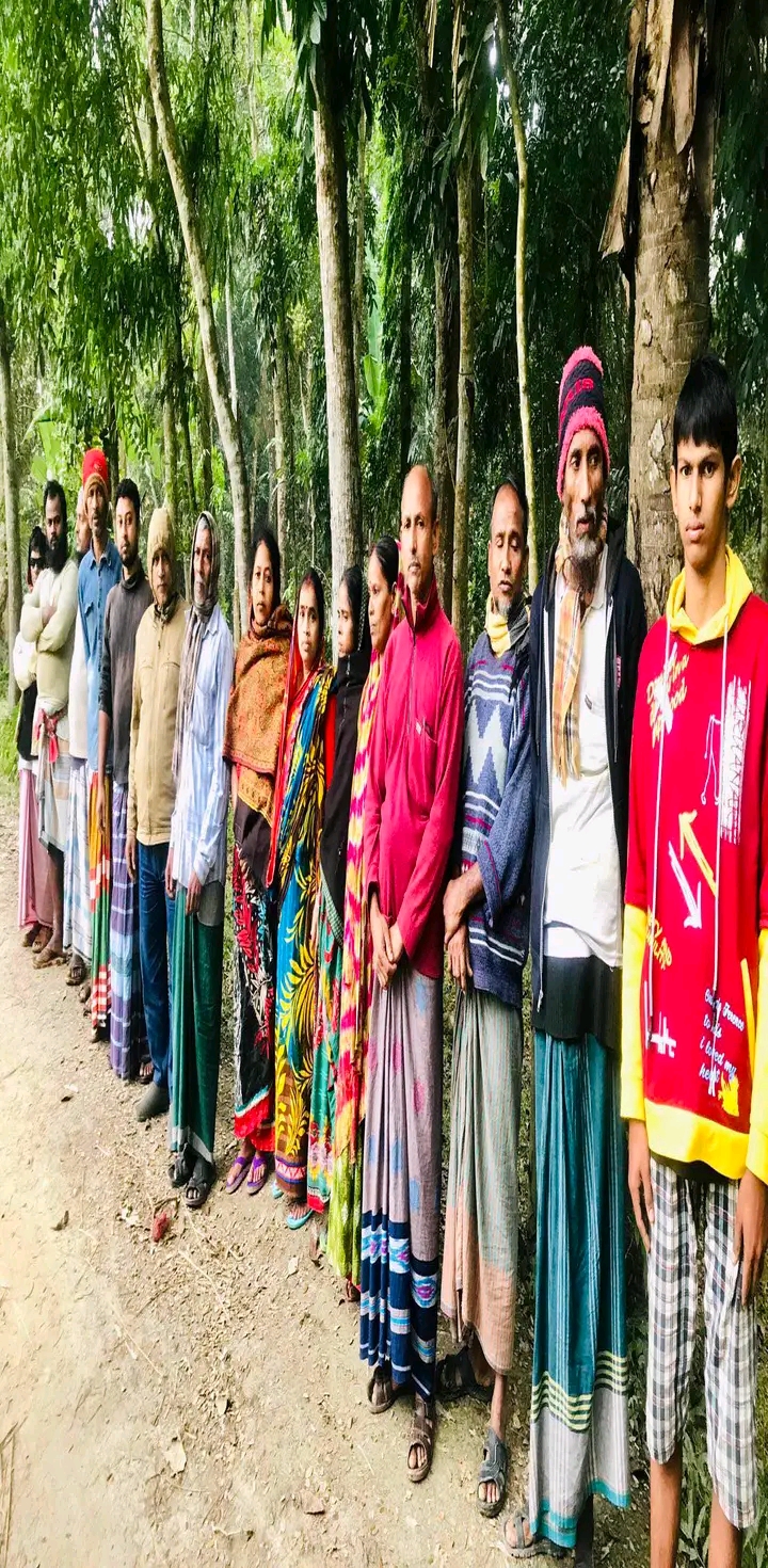 এ কারনে ওই অসহায় পরিবার টি স্থানীয়দের সহযোগিতায় ১২ ডিসেম্বর সকাল ১০ টায় তাদের জমির পাশে দাড়িয়ে মানববন্ধন করে। মানববন্ধনে উপস্থিত থেকে বক্তব্য রাখেন বামরাইল ইউনিয়নের ৭ নং ওয়ার্ডের মেম্বার মোঃ জাকির হোসেন হাওলাদার, নির্যাতনের শিকার হিরারালের স্ত্রী অর্পনা রানী, মতিলালের স্ত্রী ডালিয়া স্থানীয় মাদার্শী গ্রামের সবুজ হাওলাদার, মন্টু হাওলাদার, সেলিম হাওলাদার, আরিফ হাওলাদার, মন্টু সহ অর্ধশতাধিক স্থানীয় লোকজন মানববন্ধনে অংশগ্রহন করেন।বক্তারা বলেন মহুরি আমির আকন রোজিনা নামক এক নারীকে ব্যবহার করে একের পর এক মিথ্যা মামলা দিয়ে হয়রানি করছে এবং জমি দখলের পায়তারা চালায়।