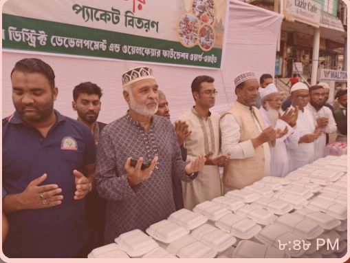 ইফতার প্যাক বিতরণ পূর্বে সমগ্র মুসলিম উম্মা ও দেশ বিদেশের সবার জন্য ও এই সংগঠন আর ও এগিয়ে যাক সমাজের কল্যাণে এই কামনায় দোয়া করেন জেলা পরিষদ মসজিদের ইমাম।