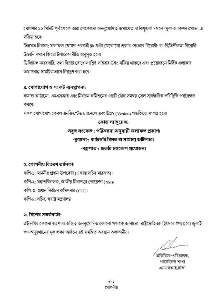 নথির বিষয় হিসেবে বলা হয়েছে—“ফলাফল ঘোষণা ও নির্বাচন পরবর্তী স্থিতিশীলতা নিশ্চিতকরণ সংক্রান্ত যৌথ বিশেষ প্রোটোকল”।