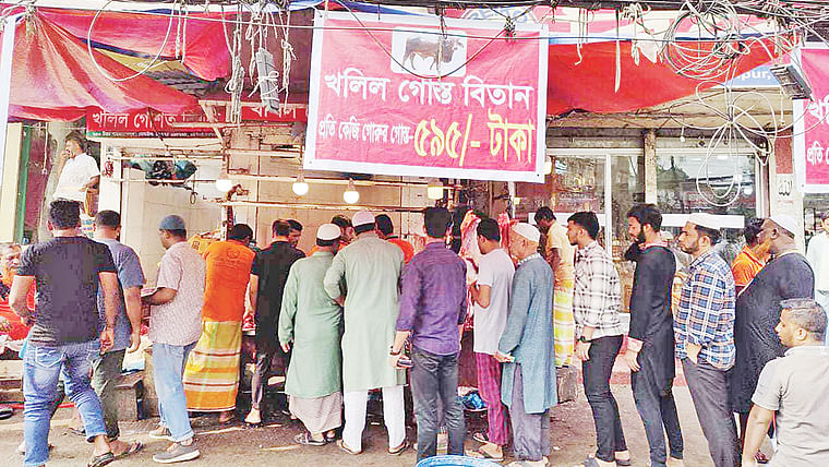 নিজস্ব প্রতিবেদক।।ঢাকার অনেক বাজার ও দোকানে গরুর মাংস প্রতি কেজি ৬০০ টাকায় বিক্রি হচ্ছে।কিছু দোকানে এর চেয়েও কম দামে গরুর মাংস পাওয়া যাচ্ছে।অতিরিক্ত দাম হওয়ার কারণে যাঁরা অনেক দিন গরুর মাংস কেনেননি, তাঁদের অনেকেই এখন মাংসের দোকানে ভিড় জমাচ্ছেন।তবে তুলনামূলক এই কম দামে গরুর মাংস আর কত দিন বিক্রি করা যাবে,সে ব্যাপারে বিক্রেতারা নিশ্চিত নন।