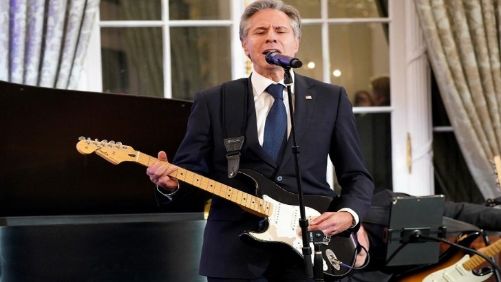 অনলাইন ডেস্ক রিপোর্ট।।শান্তি ও গণতন্ত্রের প্রচারে যুক্তরাষ্ট্রের গ্লোবাল মিউজিক ডিপ্লোম্যাসি ইনিশিয়েটিভের উদ্বোধন হলো বুধবার।এটি উদ্বোধন করেন মার্কিন পররাষ্ট্রমন্ত্রী অ্যান্টনি ব্লিঙ্কেন।এ সময় নানা ধরনের বাদ্যযন্ত্র ও সঙ্গীতের মূর্ছনায় নিজেকে সামলাতে পারেননি মার্কিন মন্ত্রী।একপর্যায়ে গিটার বাজিয়ে নিজেই শুরু করেন গান।তার সেই ভিডিও ভাইরাল হয়েছে সোশ্যাল মাধ্যমে।