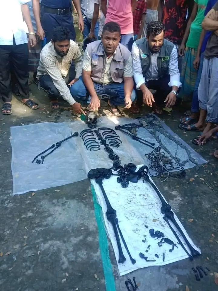 পূর্ব কানুদাসকাঠি মসজিদ সংলগ্ন কবর স্থান থেকে পুঁতে রাখা দেহাবশেষ উদ্ধার করে সিআইডি।