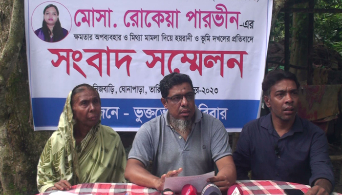 সংবাদ সম্মেলনে মো. মানিক সরদার বলেন,‘শিক্ষা মন্ত্রণালয়ের ম্যাধমিক ও উচ্চ মাধ্যমিক বিভাগের উপসচিব রোকেয়া পারভীন তাঁর মা পান্না রহমানকে দিয়ে মিথ্যা মামলা করিয়ে আমিসহ আমার পরিবারকে হয়রানি করছেন।ক্ষমতার প্রভাব খাটিয়ে বেআইনিভাবে আমাদের ভূমি দখলে নিতে পাঁয়তারা করছেন।আমার বাবা ১৯৪০ সালে ১৭ শতাংশ জমি কিনে বসতি স্থাপন করে বসবাস করে আসছিলেন।বাবা মারা যাওয়ার পর আমরা ঢাকায় থাকলেও মা বাড়িতেই থাকেন।এ সুযোগে উপসচিবের মা পান্না রহমান ৬ শতাংশ জমি নিজ নামে রেকর্ড করিয়ে নেন।পরে জমির মালিকানা নিতে ২০১৮ সাল থেকে এখন পর্যন্ত আমাদের নামে ১১টি মামলা দেন। এর মধ্যে ৯টি মামলার রায় আদালত আমাদের পক্ষে দিয়েছেন।’