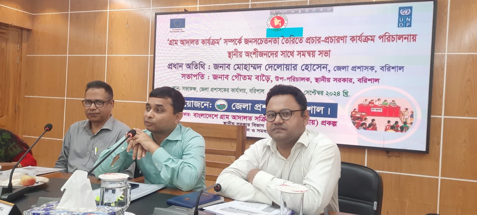 বরিশাল প্রতিনিধি॥গ্রাম আদালত কার্যক্রম” সম্পর্কে জনসচেতনতা তৈরীতে প্রচার-প্রচারণা কার্যক্রম পরিচালনায় স্থানীয় অংশীজনদের সাথে সমন্বয় সভা অনুষ্ঠিত হয়েছে।