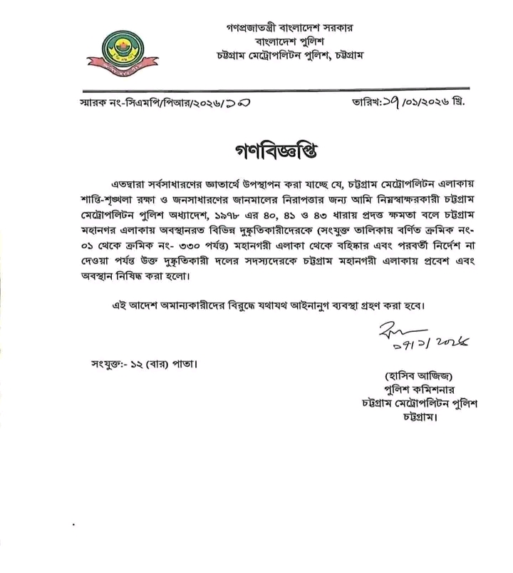 চট্টগ্রাম মহানগরে ৩৩০ জনকে একযোগে বহিষ্কারের সিদ্ধান্ত আইনশৃঙ্খলা রক্ষার কঠোর উদ্যোগ হলেও এটি একই সঙ্গে—