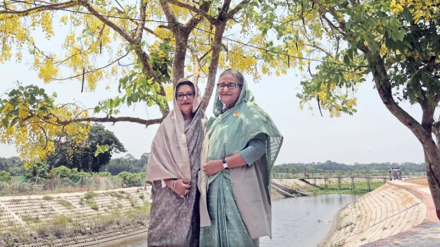 সোনালু ও কৃষ্ণচূড়া গাছের ছায়া সুনিবিড় পথ পায়ে হেঁটে পেরোবার সময় প্রধানমন্ত্রী মধুমতি নদীর সঙ্গে যুক্ত খালের পাশে দাঁড়িয়ে পড়েন হঠাৎ।এ সময় কাছে ডেকে নেন ছোট বোন শেখ রেহানাকে।যে গ্রামে জন্য ও বেড়ে ওঠা,সেই পিতৃভূমিতে সোনালু গাছের ছায়ায় ছোট বোনকে নিয়ে যেন ফিরে গেলেন শৈশবের স্মৃতিময় দিনগুলোতে।