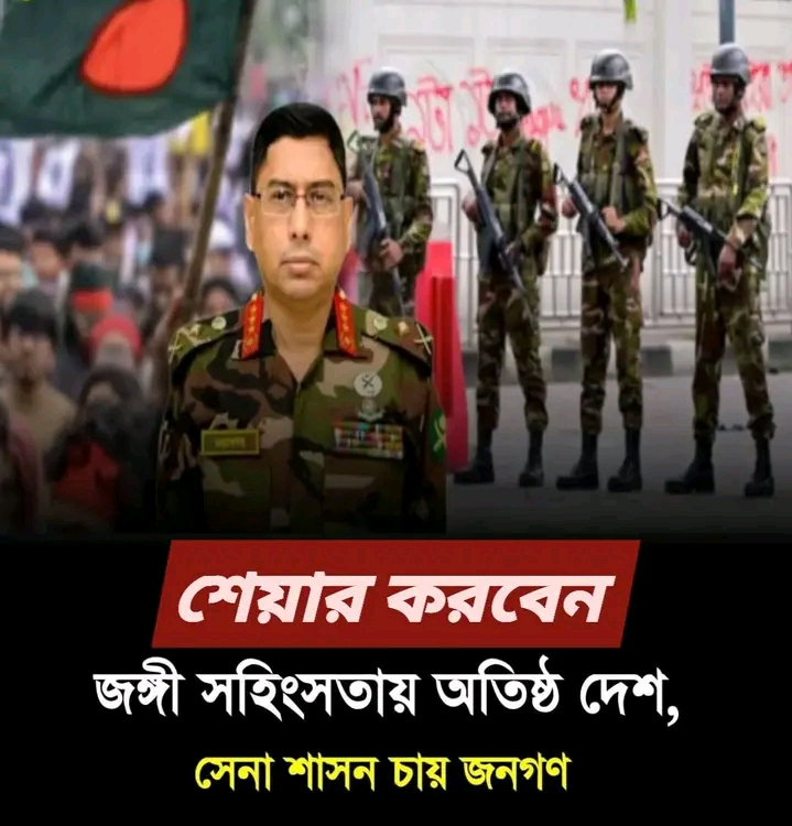 জঙ্গী গোষ্ঠীর প্রকাশ্য তাণ্ডব,সংখ্যালঘুদের ওপর হামলা এবং রাষ্ট্রের অনীহা—সব মিলিয়ে জনগণের মধ্যে ক্রমবর্ধমান অসন্তোষের সৃষ্টি করেছে।বহু মানুষ মনে করছেন,আইনশৃঙ্খলা বাহিনী কার্যকর নয় এবং বিচার প্রক্রিয়ায় দৃশ্যমান অগ্রগতি নেই।এই শূন্যতাই মানুষকে সেনাবাহিনীর দিকে নজর দিতে বাধ্য করছে।সেনা এখনো শৃঙ্খলা,শক্তি এবং দ্রুত সিদ্ধান্তের প্রতীক হিসেবে গণ্য।মানুষের ধারণা,সেনা শাসনে অন্তত রাস্তায় আগুন,প্রকাশ্য হত্যাকাণ্ড ও সংখ্যালঘু নির্যাতন থাকবে না।