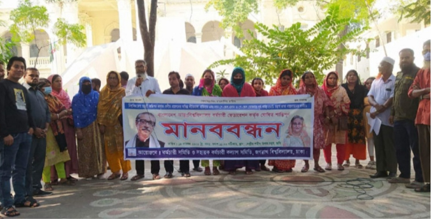 আজ সোমবার (১৪ নভেম্বর) বেলা ১১ টায় জগন্নাথ বিশ্ববিদ্যালয়ের কেন্দ্রীয় শহীদ মিনার প্রাঙ্গনে বাংলাদেশ আন্তঃবিশ্ববিদ্যালয় কর্মচারী ফেডারেশন (বাআবিকফ) ঘোষিত মানববন্ধনটি পালিত হয়।