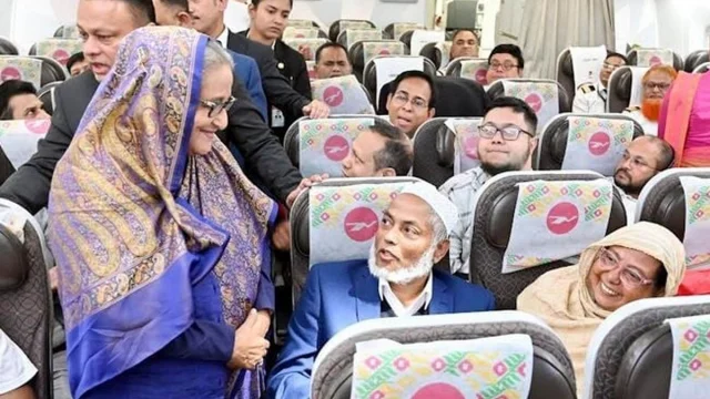 শেখ হাসিনা জাতীয় পতাকাবাহী বিমানের বাণিজ্যিক ফ্লাইটে পরিপূর্ণ যাত্রীদের সাথে কথা বলেন।