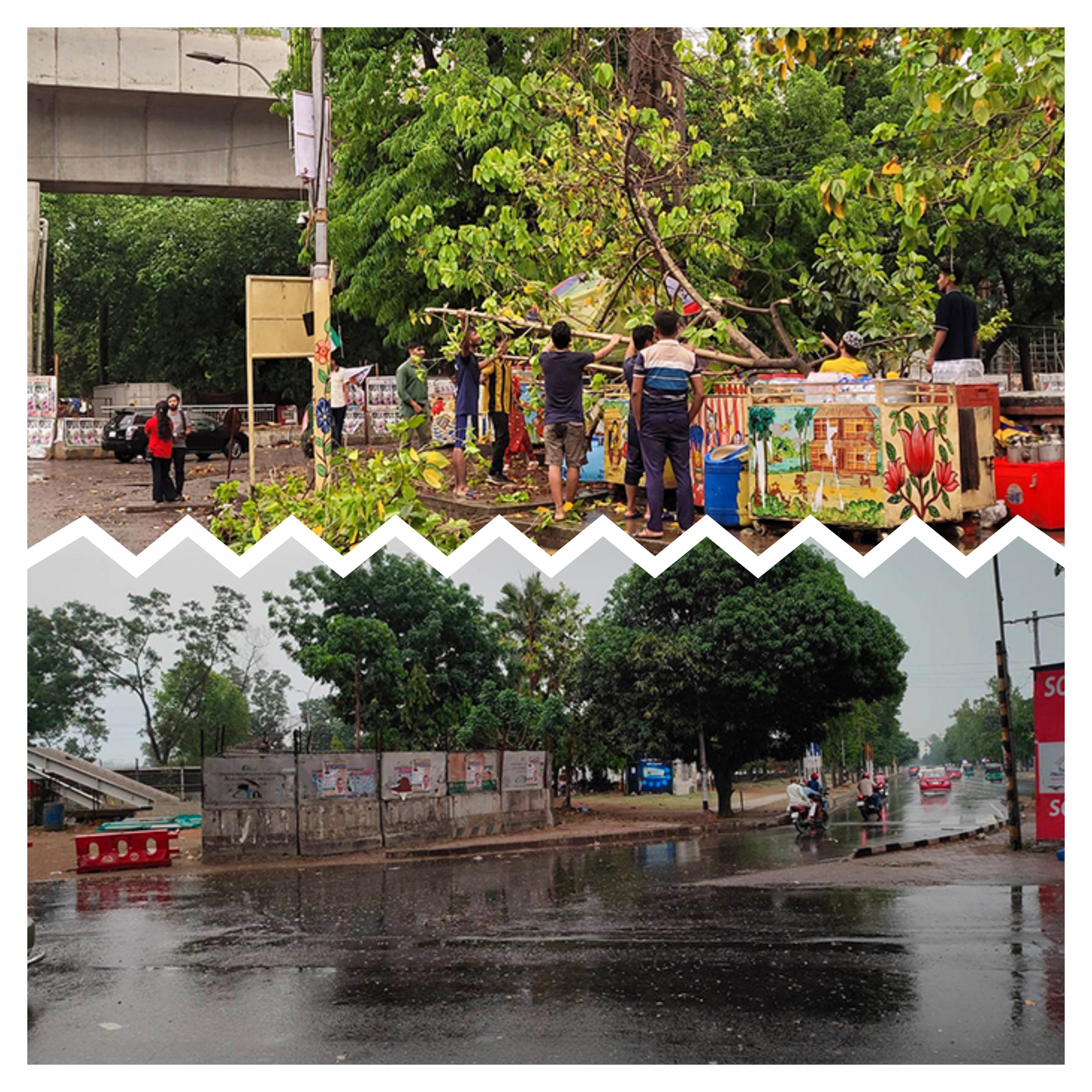 বৃষ্টির সঙ্গে ঝড়ো হাওয়া রয়েছে।ফলে কিছু কিছু জায়গায় গাছ উপড়ে পড়ার ঘটনা দেখা গেছে।