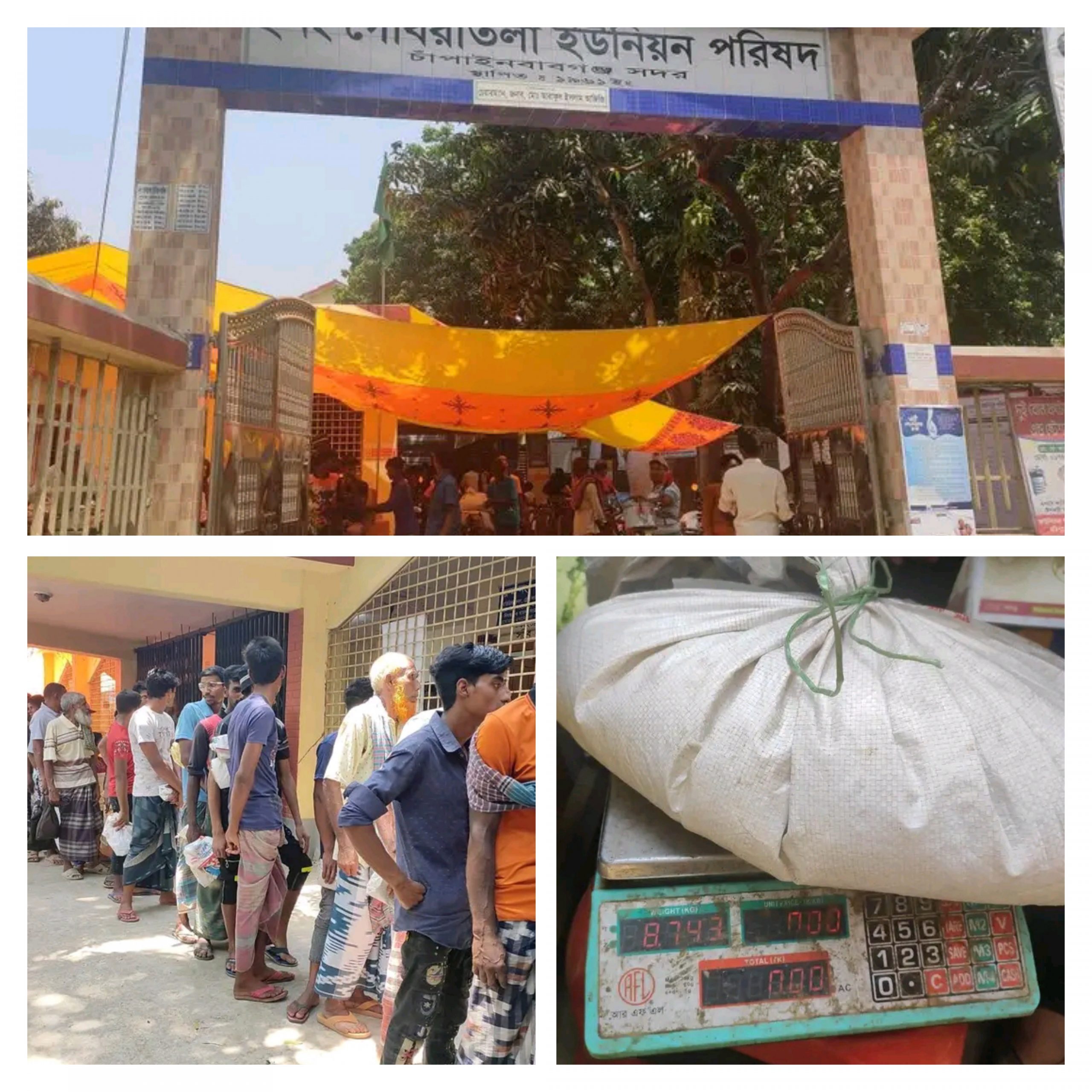 গোবরাতলা ইউনিয়নের দিয়াড় ধাইনগর গ্রামের স্কুলছাত্র আশিক আলী তার বাবার নামে বরাদ্দ হওয়া চাল নিতে এসেছিলেন মঙ্গলবার সকালে।ইউনিয়ন পরিষদে চাল নেয়ার পর তার চাল পরিষদের সামনে থাকা তরমুজের দোকানের ডিজিটাল স্কেলে মাপা হয়। সেখানে দেখা যায়,১০ কেজি চালের জায়গায় দেয়া হয়েছে ৮ কেজি ২৭০ গ্রাম।