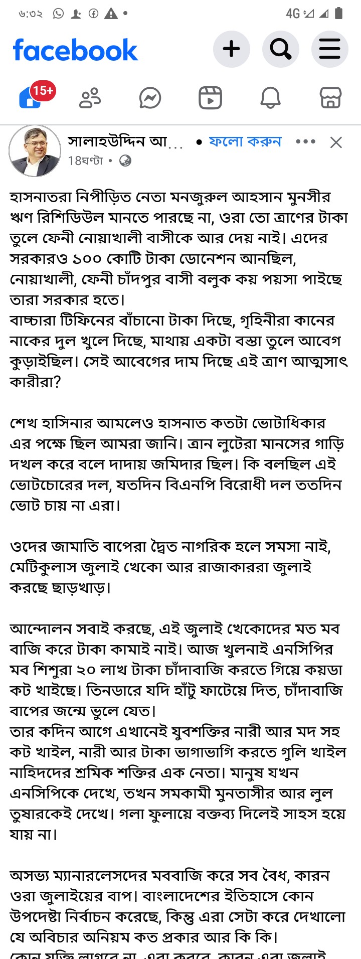 এই প্রেক্ষাপটে বিএনপির স্থায়ী কমিটির সদস্য ও দলের মুখপাত্র সালাউদ্দিন আহমেদের ফেসবুক স্ট্যাটাস রাজনৈতিক মহলে ব্যাপক আলোচনার জন্ম দিয়েছে।স্ট্যাটাসে উল্লিখিত অভিযোগগুলোর নিরপেক্ষ তদন্ত এবং সংশ্লিষ্টদের আইনের আওতায় আনার দাবি জানাচ্ছেন অনেকে।সামাজিক যোগাযোগমাধ্যমে কেউ কেউ অভিযুক্তদের গ্রেপ্তার ও দৃষ্টান্তমূলক শাস্তির আহ্বানও জানিয়েছেন।