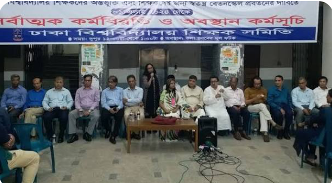 সর্বজনীন পেনশনের ‘প্রত্যয়’ কর্মসূচি নিয়ে প্রজ্ঞাপন বাতিল করাসহ তিন দফা দাবিতে ১ জুলাই থেকে পাবলিক বিশ্ববিদ্যালয়ের শিক্ষক ও কর্মকর্তা-কর্মচারীরা একযোগে সর্বাত্মক কর্মবিরতি পালন করছেন।এ কারণে ক্লাস পরীক্ষা হচ্ছে না।প্রশাসনিক ভবনেও কোনো কাজ হচ্ছে না।ফলে বিশ্ববিদ্যালয়ে সেবা নিতে যাওয়া মানুষেরা ভোগান্তি পোহাচ্ছেন।