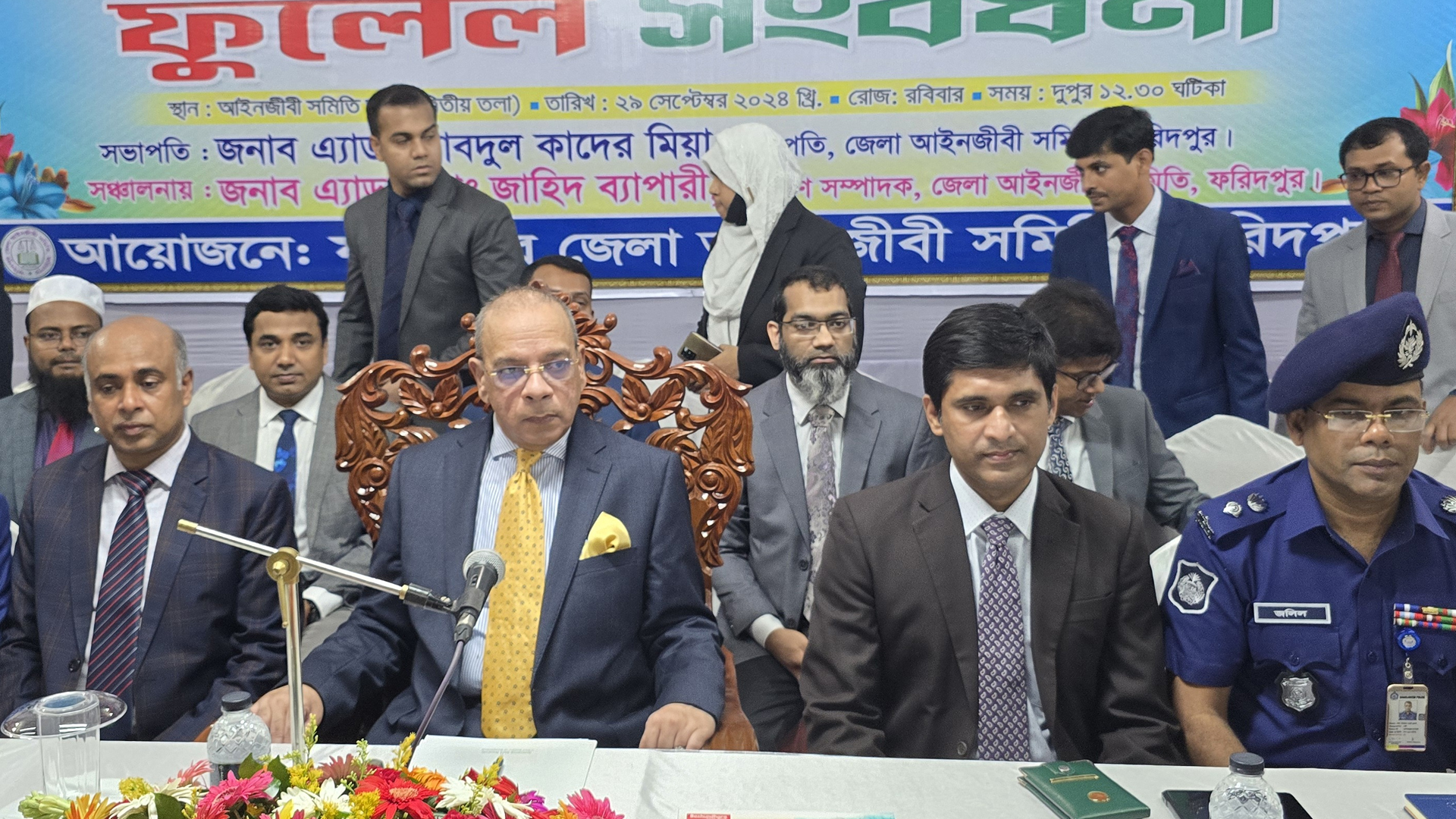 জেলা আইনজীবী সমিতির সভাপতি অ্যাডভোকেট আবদুল কাদের মিয়ার সভাপতিত্বে জেলা দায়রা জজের বিচারক জিয়া হায়দার,জেলা প্রশাসক কামরুল হাসান মোল্যা,পুলিশ সুপার আব্দুল জলিল,অ্যাডভোকেট মোদাররেস আলী ইছা, অ্যাডভোকেট সুবল চন্দ্র সাহা,অ্যাডভোকেট জাহিদ বেপারি বক্তব্য রাখেন।