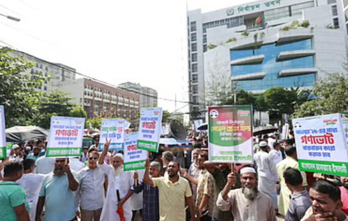 পরে আগারগাঁও মেট্রোস্টেশন থেকে মিছিল নিয়ে নির্বাচন কমিশন ভবনের সামনে যায় বাংলাদেশ জামায়াতে ইসলামী। মিছিলের নেতৃত্বে ছিলেন দলটির সহকারী সেক্রেটারি জেনারেল মাওলানা আবদুল হালিম ও ঢাকা-১৩ আসনে জামায়াত–সমর্থিত সংসদ সদস্য পদপ্রার্থী মোবারক হোসাইন।মিছিলে জামায়াতের কেন্দ্রীয় এবং ঢাকা মহানগরী উত্তর ও দক্ষিণের নেতা-কর্মীরা অংশ নেন।
