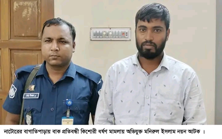 নাটোর প্রতিনিধি।।নাটোরের বাগাতিপাড়ায় এক বাক প্রতিবন্ধী কিশোরী ধর্ষণ মামলায় অভিযুক্তকে আটক করেছে সিপিসি-২, নাটোর ক্যাম্প, র্যাব-৫ । আটককৃত হলেন উপজেলার ডুমরাই রামপাড়া গ্রামের মৃত তৈয়ব মোল্লার ছেলে মনিরুল ইসলাম নয়ন (২৭)। শুক্রবার (৭ অক্টোবর) রাতে ঢাকা মহানগরীর মতিঝিল থানার আরামবাগ এলাকা থেকে তাকে আটক করা হয়।