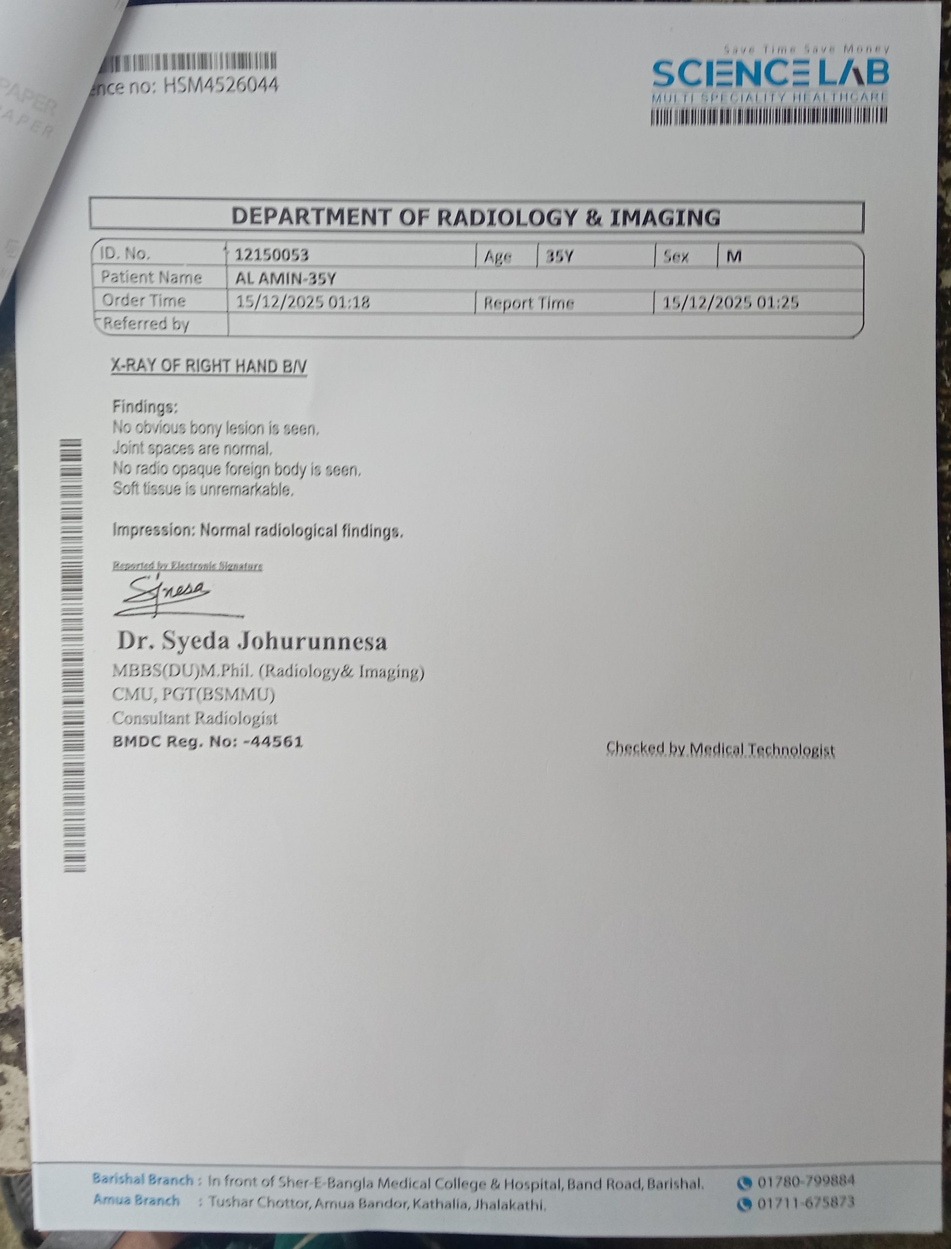 নোট: এই প্রতিবেদন ভুক্তভোগীর সরবরাহকৃত প্রেসক্রিপশন, ল্যাব রিপোর্ট,রেডিওলজি রিপোর্ট ও শেবাচিম হাসপাতালের আউটডোর নথির ভিত্তিতে প্রস্তুত।তদন্ত সাপেক্ষে সংশ্লিষ্ট পক্ষের বক্তব্য সংযুক্ত করা হবে।