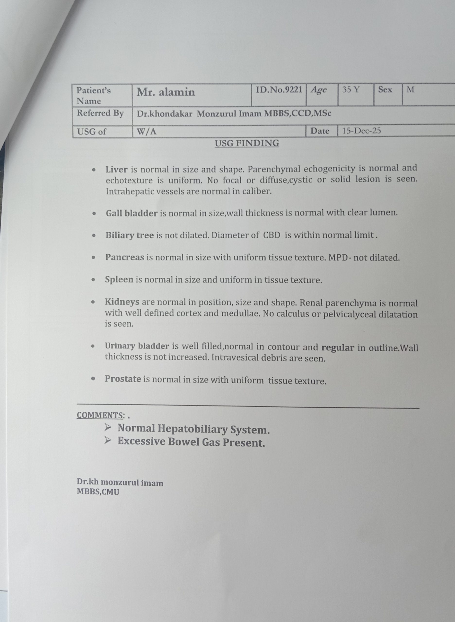 USG Whole Abdomen: Normal Hepatobiliary System, Excessive Bowel Gas Present