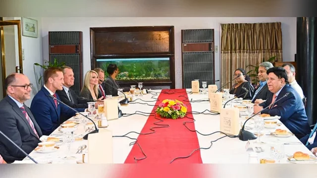 রোববার (১৩ আগস্ট) দুপুরে রাষ্ট্রীয় অতিথি ভবন পদ্মায় পররাষ্ট্রমন্ত্রীর সঙ্গে বৈঠক করেন বাংলাদেশ সফররত মার্কিন কংগ্রেসের দুই সদস্য এড কেইস ও রিচার্ড ম্যাকরমিক।