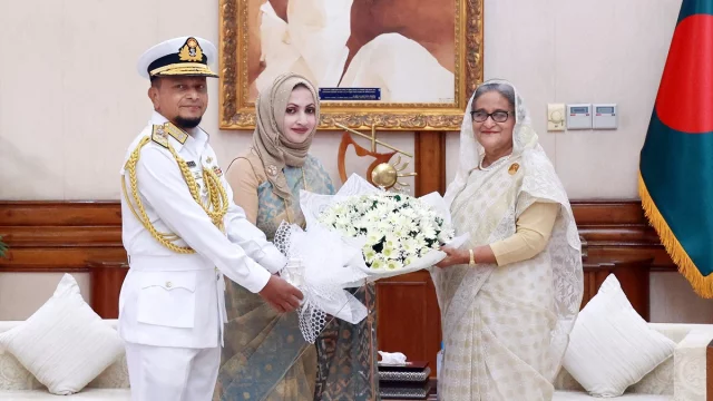 রোববার (৩ সেপ্টেম্বর) সকালে গণভবনে নৌবাহিনী প্রধানকে ফুল দিয়ে শুভেচ্ছা জানান প্রধানমন্ত্রী।
