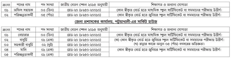 আবেদন ফরম: আগ্রহীরা জনপ্রশাসন মন্ত্রণালয়ের ওয়েবসাইট mopa.gov.bd অথাবা জেলা প্রশাসকের ওয়েবসাইট www.patuakhali.gov.bd থেকে আবেদনপত্র সংগ্রহ