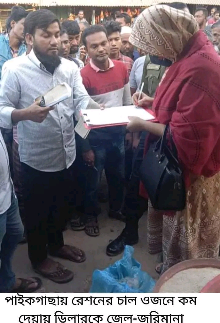 পাইকগাছা(খুলনা)প্রতিনিধি।।খুলনার পাইকগাছায় ১৫ টাকা দরের রেশনের চাউল ওজনে কম দেয়ার অপরাধে ডিলার আব্দুল কুদ্দুস সরদারকে ২০ হাজার টাকা জরিমানা করা হয়েছে।