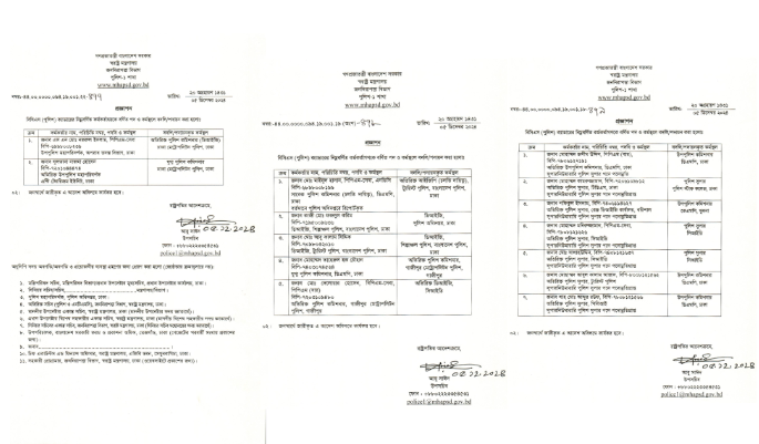 বৃহস্পতিবার (৫ ডিসেম্বর) স্বরাষ্ট্র মন্ত্রণালয়ের জননিরাপত্তা বিভাগের পুলিশ-১ শাখা থেকে আলাদা তিনটি প্রজ্ঞাপনে এ বদলি করা হয়।
