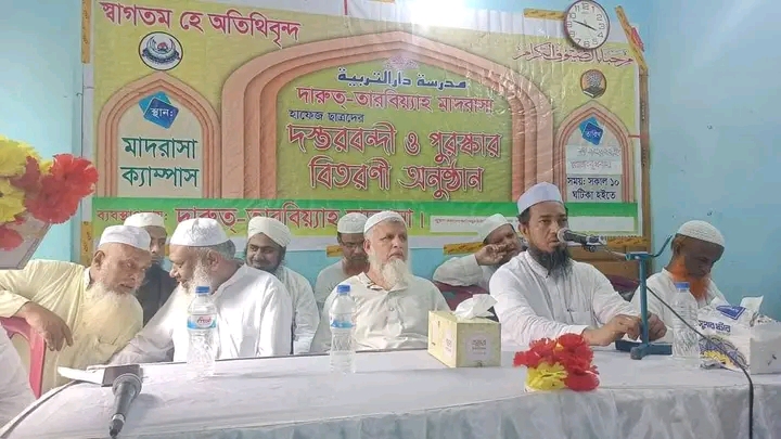 চট্টগ্রাম প্রতিনিধি।। আজ বাদে জোহর চট্টগ্রাম শহরস্থ নতুন চাদগাও থানা তারুত তারবিয়া মাদরাসার হেফজ সমপ্তকারী ছাত্রদের পাগড়ি প্রদান উপলক্ষে আলোচনা সভা অত্র প্রতিষ্ঠানের পরিচালক মাওলানা মহিউদ্দীনের সভাপতিত্বে অনুষ্ঠিত হয় এতে উপস্থিত হোন আল জামিয়া মঈনুল ইসলাম মেহেরিয়ার পরিচালক শাইখুল ইসলাম আল্লামা শাহ আহমদ শফির রহঃ এর সাহেবজাদা মাওলানা আনাস মাদনী দাঃবাঃ, আল জামিয়া আল ইসলামিয়া পটিয়ার শিক্ষা পরিচালক আল্লামা মুফতী জসিম উদ্দিন দাঃবাঃ, সেগুনবাগান তালিমুল কোরআন কমপ্লেক্সের পরিচালক হাফেজ তৈয়ব সাহেব, ইসলামী ঐক্যজোটের যুগ্মমহাসচিব মওলানা মঈনউদ্দীন রুহী, জামিয়া পটিয়ার সিনিয়র শিক্ষক মাওলানা জাফর সাদেক