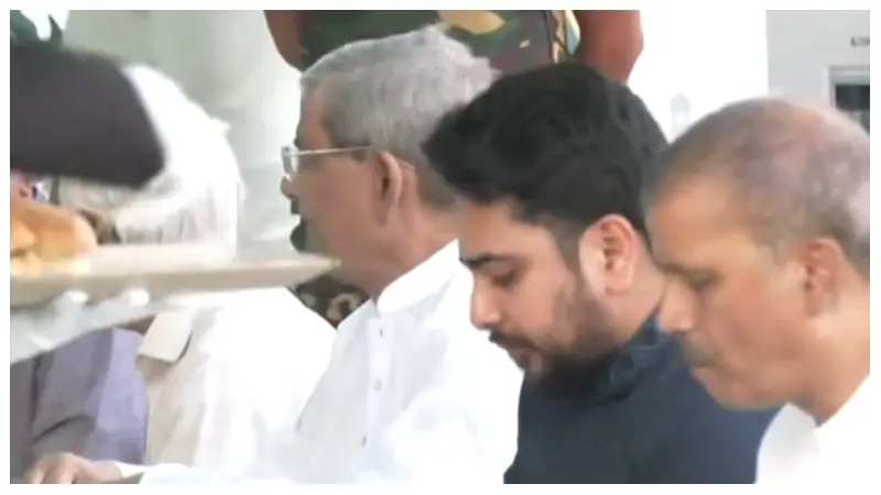 নিজস্ব প্রতিবেদক।।ঈদুল ফিতরে বিশিষ্টজনদের সাথে শুভেচ্ছা বিনিময় করছেন প্রধান উপদেষ্টা ড. মো. ইউনূস।তাদের জন্য আপ্যায়নের ব্যবস্থা রাখা হয়েছে, একই ফ্রেমে উপদেষ্টা আসিফ নজরুল,জাতীয় নাগরিক কমিটির আহ্বায়ক নাহিদ ইসলাম এবং বিএনপির মহাসচিব মির্জা ফখরুল ইসলাম আলমগীরকে দেখা যায়।