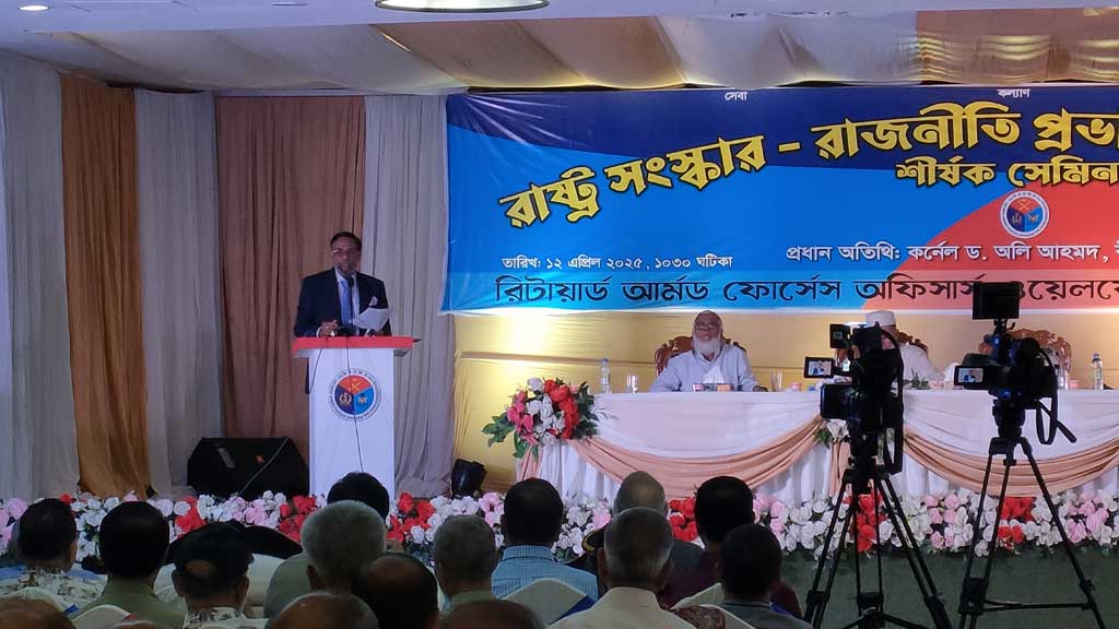 ‘রাষ্ট্র সংস্কার-রাজনীতির প্রভাবমুক্ত সশস্ত্র বাহিনী’ শিরোনামে এ সেমিনার আয়োজন করে অবসরে যাওয়া সেনা কর্মকর্তাদের সংগঠন রিটায়ার্ড আর্মড ফোর্সেস অফিসার্স ওয়েলফেয়ার অ্যাসোসিয়েশন-রাওয়া।