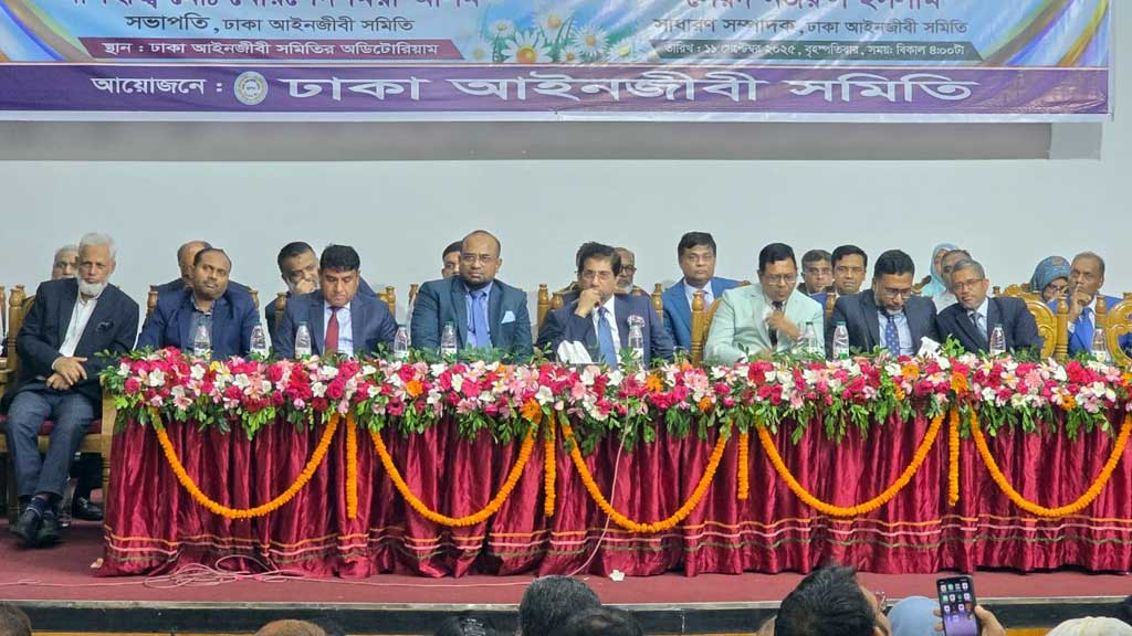 ঢাকা আইনজীবী সমিতির সভাপতি খোরশেদ মিয়া আলমের সভাপতিত্বে ও সাধারণ সম্পাদক সৈয়দ নজরুল ইসলামের সঞ্চালনায় সভায় অন্যদের মধ্যে বিচারপতি শেখ তাহসিন আলী,বিচারপতি ফয়েজ আহমেদ,বিচারপতি মো. সগীর হোসেন,বিচারপতি শিকদার মাহমুদুর রাজী,ঢাকার জেলা ও দায়রা জজ রফিকুল ইসলাম,ঢাকার মুখ্য মহানগর হাকিম মোহাম্মদ মোস্তাফিজুর রহমান ও ঢাকার মুখ্য বিচারিক হাকিম নূরে আলম ভুইয়া উপস্থিত ছিলেন।