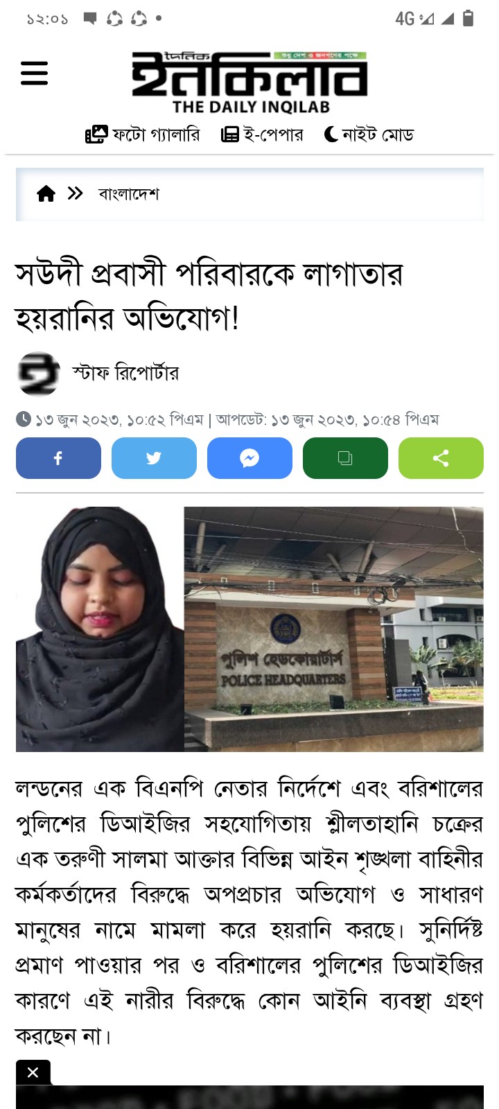 এবিষয়ে বরিশাল রেঞ্জের সাবেক ডিআইজি এসএম আক্তারুজ্জামান দায়িত্বে থাকাকালীন সালমার অভিযোগের সত্যতা নিশ্চিত করেছেন।