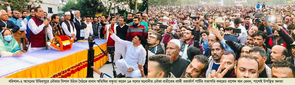 বৃহস্পতিবার বিকাল ৪ টায় উজিরপুর সরকারি ডবিউ বি. ইউনিয়ন ইনস্টিটিউশন বিদ্যালয় মাঠে এক বিশাল উঠান বৈঠকে প্রধান অতিথির বক্তব্যে তিনি আরো বলেন, উজিরপুরে নৌকার উঠান বৈঠকে জনতার ঢলই প্রমান করে এই সরকারের উন্নয়ন।ডিজিটাল বাংলাদেশ থেকে স্মার্ট বাংলাদেশে রূপান্তরিত হওয়া সময়ের ব্যাপার মাত্র।বিশ্বের কাছে এই নির্বাচন একটি চ্যালেঞ্জের বিষয় এবং গণতন্ত্র রক্ষার নির্বাচন। তাই আগামী ৭ তারিখ নৌকা মার্কায় ভোট দিয়ে নৌকার প্রার্থীকে বিজয়ী করে ৫ম বারের মত জননেত্রী শেখ হাসিনাকে প্রধানমন্ত্রী হওয়ার সুযোগ করে দিন।বিএনপি ভোট বর্জনের যে ভুয়া প্রচারণা চালাচ্ছে তাতে কেহ বিভ্রান্ত হবেন না।