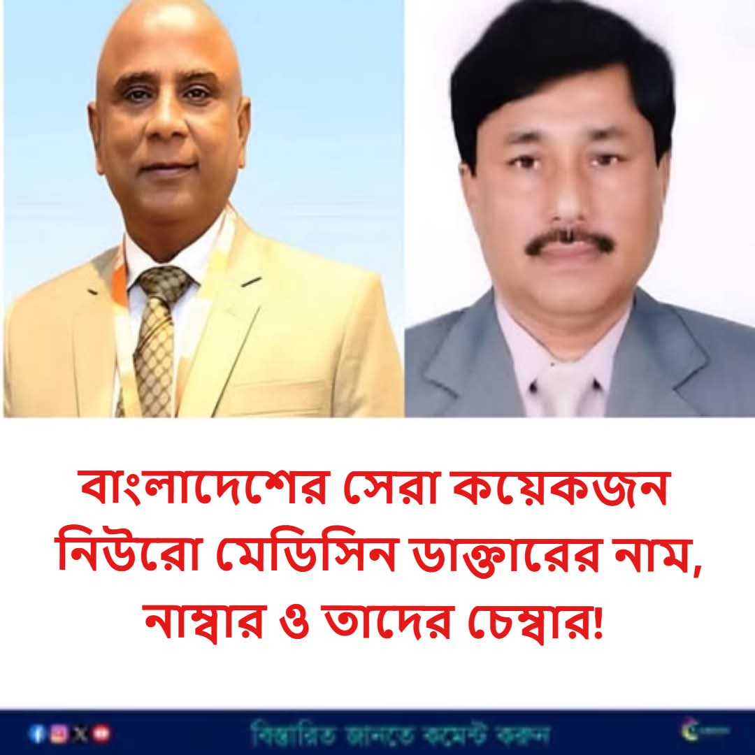 নিজস্ব প্রতিবেদক।।আপনার বা আপনার প্রিয়জনের স্নায়ুজনিত সমস্যার জন্য নির্ভরযোগ্য ও অভিজ্ঞ নিউরো মেডিসিন বিশেষজ্ঞ খুঁজছেন? দেখে নিন ঢাকার সেরা কয়েকজন নিউরো মেডিসিন ডাক্তার ও তাদের চেম্বারঃ-