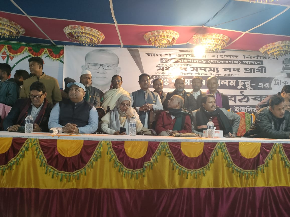বাকেরগঞ্জ উপজেলা আ.লীগের সম্পাদক ও পৌর মেয়র মো. লোকমান হোসেন ডাকুয়া বলেন,বাকেরগঞ্জ উপজেলা আ.লীগের সভাপতি ও বীর-মুক্তিযোদ্ধা শামসুল আলম চুন্নু উপজেলা পরিষদের চেয়ারম্যান পদের নির্বাচনে জয়ের হ্যাটট্রিক অর্জন করেছেন।জন সেবামূলক কাজ করায় তাকে ২০২২ সালে বিভাগের উপজেলা পর্যায়ে শ্রেষ্ঠ চেয়ারম্যান নির্বাচিত করা হয়েছিল।এখন তিনি জনসেবার কেন্দ্র পরিধি বাড়াতে ওই চেয়ারম্যান পদ থেকে পদত্যাগ করে বরিশাল-৬ আসনে উন্নয়নের পাশাপাশি নিজেকে জন সেবামূলক কাজ করতে চায়।তাই সকল জনগণকে ঐক্যবদ্ধ হয়ে আপনার সাত তারিখ ট্রাক প্রতীকে ভোট দিয়ে চুন্নু ভাইকে নির্বাচিত করবেন। দিনে দিনে ট্রাক সমর্থক বেড়েই চলেছে।