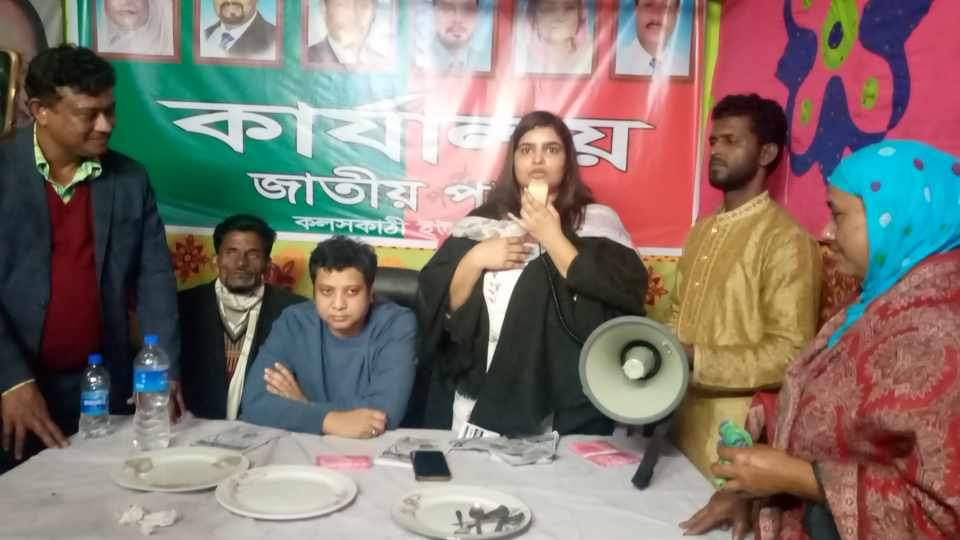 বাকেরগঞ্জ কলসকাঠীতে জাতীয় পার্টির পেস্টেডিয়াম সদস্য এমপি নাসরিন জাহান রত্না আমিনের মেয়ে ব্যারিস্টার ফারহা ফিজা বিনতে আমিন ও তার স্বামী জনাব ফয়সাল কাদের,লিফলেট বিতরণ করেন লাঙ্গল মার্কার ভোট চায় কলসকাঠী জাতীয় পার্টির নেতা কর্মী নিয়ে,