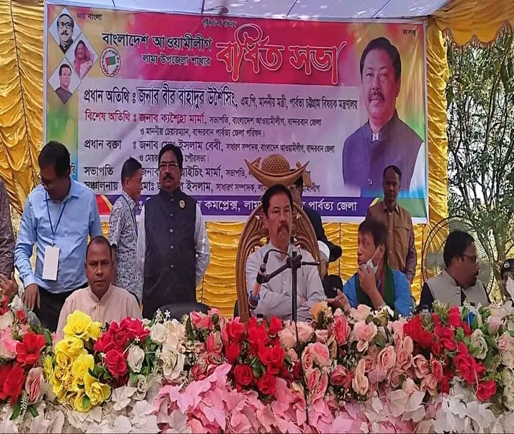প্রধান অতিথি পার্বত্য মন্ত্রী বীর বাহাদুর উশৈসিং এমপি দলীয় নেতাকর্মীদের অসম প্রতিযোগিতা ও ক্ষমতার দ্বন্দ্ব ভুলে নিবেদিত হয়ে কাজ করার অাহ্বান জানান সকলকে।