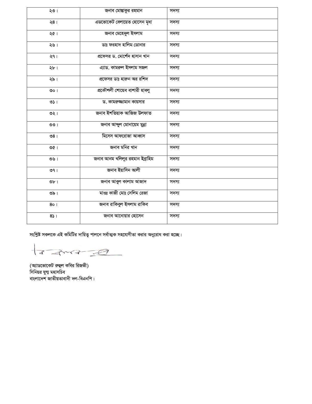 ৪ অ্যাডভোকেট রুহুল কবির রিজভী সদস্য সচিব